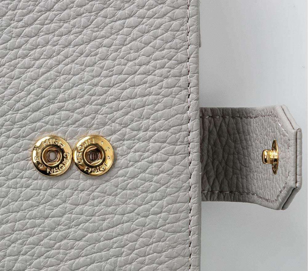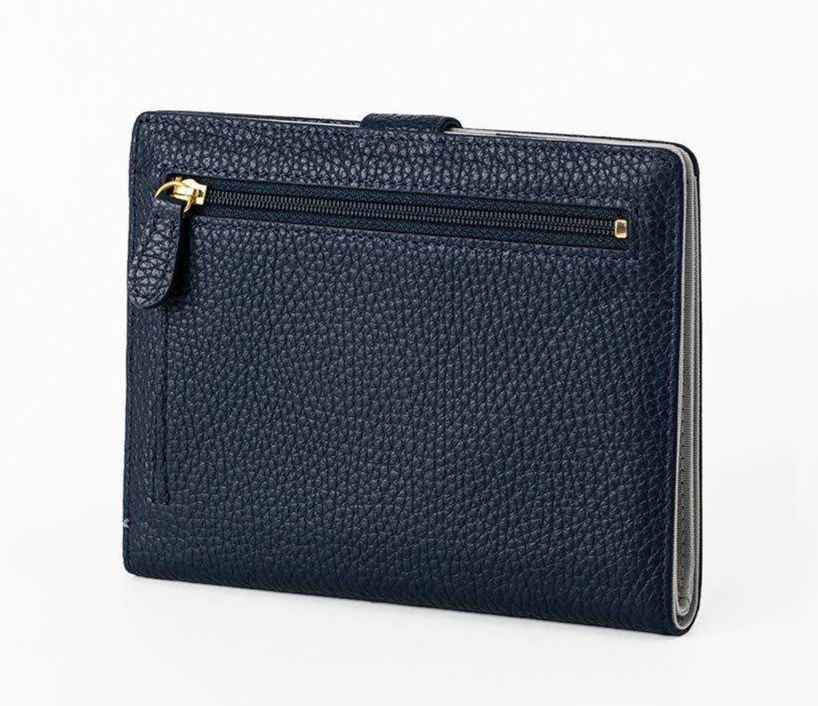 スナップボタンの開閉と取り出しやすい仕切り付きポケットで、日常使いに便利な使い勝手の良さが特徴です。